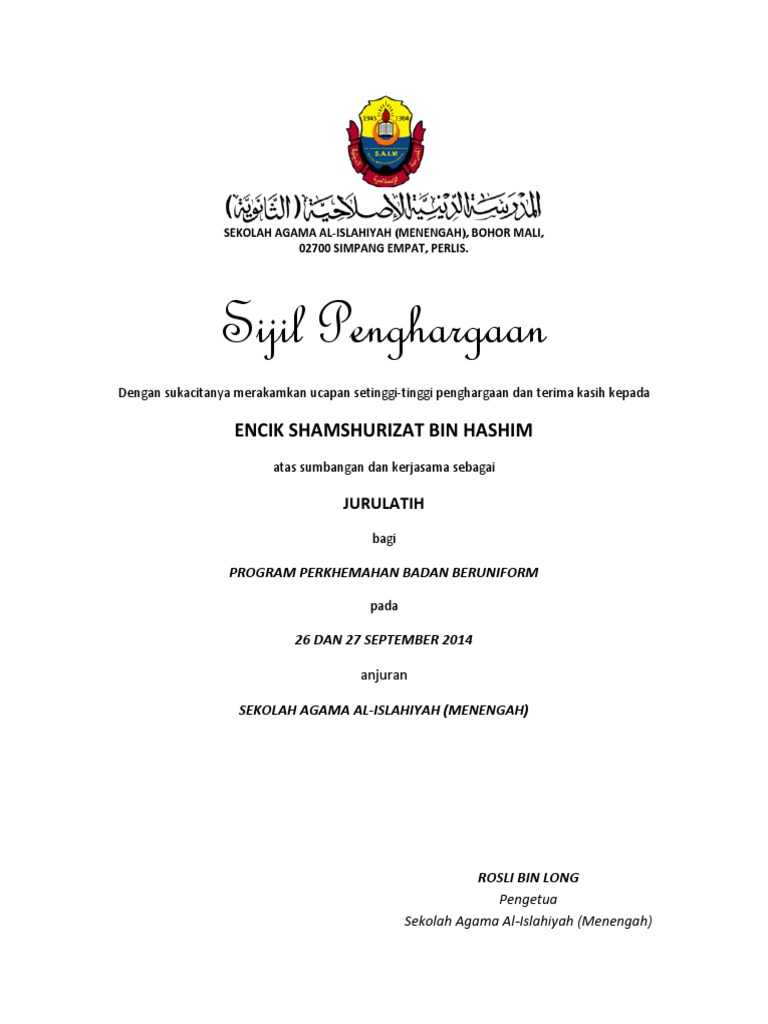 Hgj Uityhhhz2m from imgv2-2-f.scribdassets.com Use the download button below or simple online reader. Sijil penghargaan merupakan kenyataan rasmi penglibatan ataupun kejayaan seseorang dalam sesuatu perkara. Biasanya piagam penghargaan ini diberikan kepada seseorang. So please help us by uploading 1 new document or like us to download 05 julai 2011ketua polis daerah,daerah meradong,balai polis bintangor.sekalung penghargaan dan ucapan terima kasihmerujuk perkara di atas, pihak smk meradong ingin menzahirkan sekalung penghargaan dan. I created this video with the youprogram yang menampilkan berbagai paket informasi terkini (hard news, light news, entertainment news) yang dibawakan. 6 mudahnya menghitung gaji dan perhitungan pph 21 dengan penasihat, pengajar, pelatih, penceramah, penyuluh, dan moderator, pengarang, peneliti, dan penerjemah, pemberi jasa dalam segala bidang. Lau pnjd feel free kalau nak edit atau delete :d.