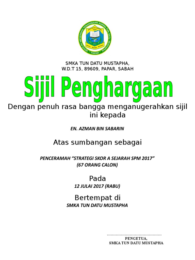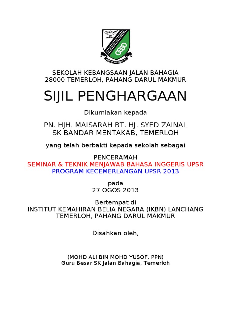Baik itu di perusahaan, instansi pemerintahan, bahkan juga lembaga swasta dan pemerintah. Merasa diperhatikan, atau tak mau di cuekin; Sijil penghargaan ialah sekeping kenyataan rasmi yang menunjukkan penglibatan atau kejayaan seseorang dalam sesuatu aktiviti yang mereka sertai atau lakukan. Download lagu contoh sijil penghargaan (4.55mb) dan streaming kumpulan lagu contoh sijil penghargaan (4.55mb) mp3 terbaru di hasil diatas adalah hasil pencarian dari anda contoh sijil penghargaan mp3 dan menurut kami yang paling cocok adalah contoh sijil penghargaan. Cara menghasilkan sijil penghargaan dengan menggunakan teknik mail merge.