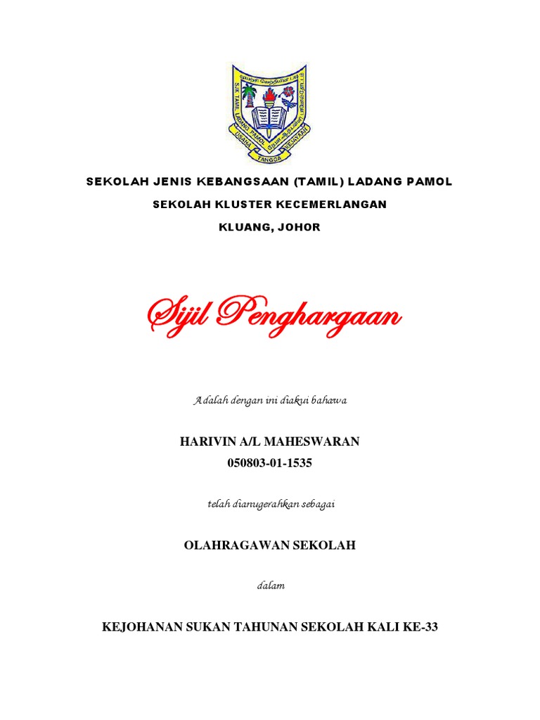 Sijil penyertaan sekalung penghargaan ditinta kepada mohamad nur syazwan b. percuma 11 template sijil penyertaan/penghargaan/pemenang untuk sebarang majlis/pertandingan. Sains sukan tingkatan 6 ( sijil. Sijil penghargaan anugerah tokoh pelajar 2013 smk kunak.docx. Sukan yang terdiri daripada pelbagai jenis seperti sukan air, sukan balapan, sukan padang, sukan tradisional dan seumpamanya ini dilakukan oleh rakyat kejayaan dan penyertaan pemain dalam pelbagai pertandingan antarabangsa terutamanya dalam acara badminton, hoki dan bola sepak telah.