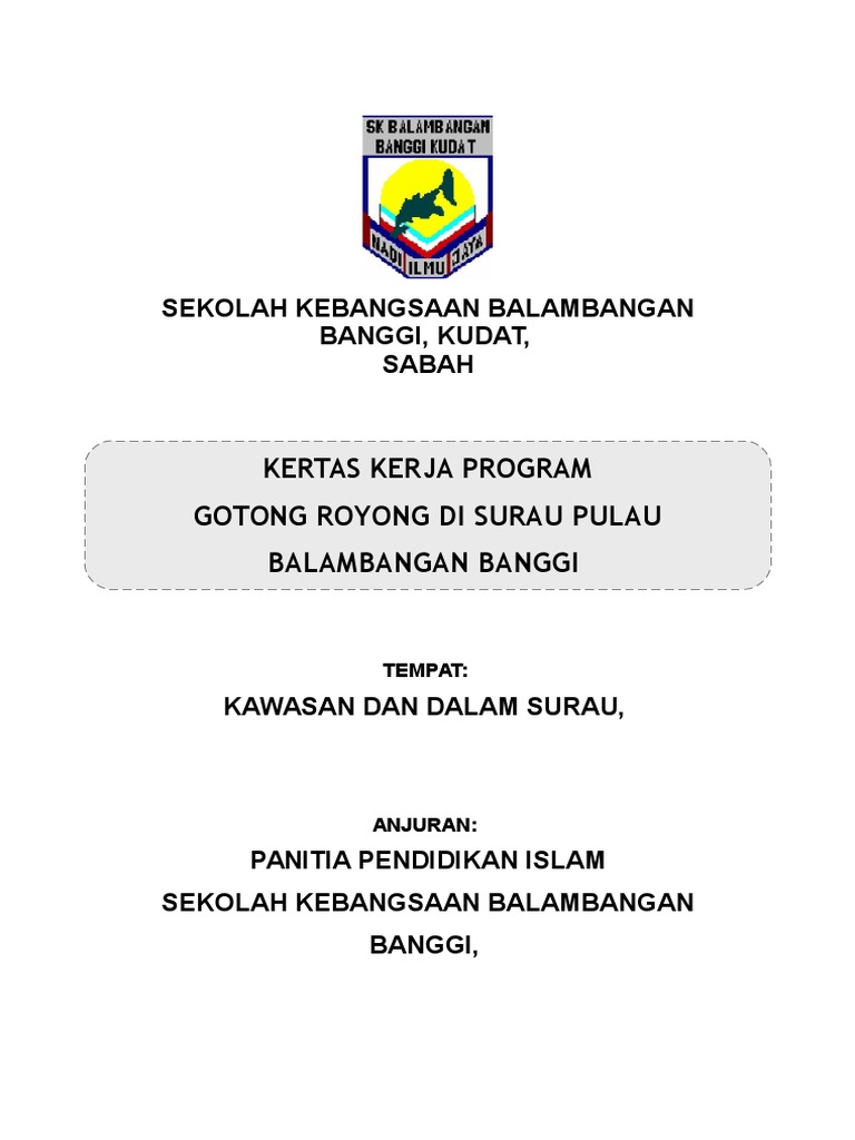SURAU ALHIJRAH PPR PANTAI RIA - suraualhijrahpprpantairia ... from 1.bp.blogspot.com Panitia pendidikan islam sekolah kebangsaan balambangan banggi, guru dan murid sk pulau balambangan.0 objektif 3. Saya juga menggunakan bantuan google untuk menghasilkan kertas kerja ini. Adat istiadat dalam tolong menolong diantara warga dalam berbagai kegiatan sosial. 1.1masjid al taufikiah felda soeharto 2. Kertas kerja program gotong royong perpaduan bersepadu2. Sekolah kebangsaan balambangan banggi, kudat, sabah kertas kerja program gotong royong di surau pulau. Definisi gotong royong adalah bentuk kerja sama antara sejumlah orang atau warga masyarakat dalam kehidupan sosial dalam menyelesaikan sesuatu atau pekerjaan. Oleh sakjoyo dan pujiwati sakjoyo (di selvi s.