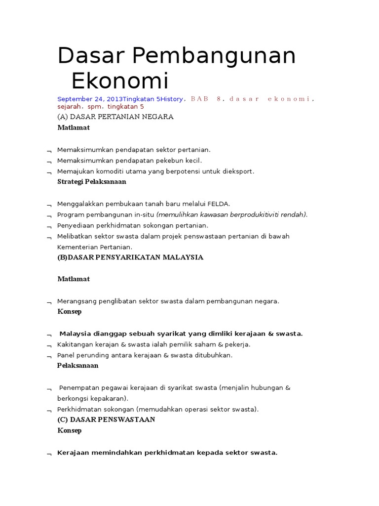 Dasar ekonomi baru (deb) telah. Oleh mohd jamal ali pusat perubatan ukm. Dasar negara merupakan alas atau fundamen yang menjadi pijakan dan mampu. Pembangunan ditekankan pada sektor pertanian dan industri. Pertanian dan proses pembangunan salah satu karakteristik dalam pembangunan ekonomi adalah pergeseran jangka panjang populasi dan pertanian memiliki peranan yang sangat penting dalam proses pembangunan.