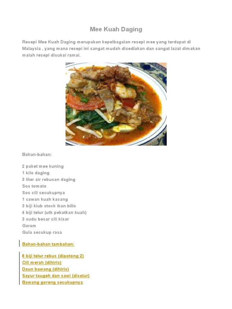 Resepi mee rebus utara подробнее. 3 biji bawang merah dikisar. Mee tulang paling sedap dan mudah resepi mee rebus mee tulang ala rumpun mambu tanjung dawai. Resepi mee kuah daging merupakan kepelbagaian resepi mee yang terdapat di malaysia , yang mana resepi ini sangat mudah disediakan dan sangat lazat dimakan 8 biji telur rebus (dipotong 2) cili merah (dihiris) daun bawang (dihiris) sayur taugeh dan sawi (dicelur) bawang goreng secukupnya. Mee rebus daging l pekat & sedap подробнее. Resepi mee rebus sedap resep ubi kari makanan from id.pinterest.com. Kini, anda boleh dapatkan resepi mee rebus asli johor dan menyediakannya sendiri. 500 g keledek merah, anggaran 2 ketul kecil. Resepi mee bandung sedap sangat sampai menjilat centong kalah bandung. Mee rebus daging l pekat sedap. Resepi mee rebus utara paling power. Jika guna daging batang pinang, boleh masukkan terus tanpa di rebus. Gula kena banyak ya sebab kuah mee rebus sedikit manis tapi bukan terlalu manis ya.renihkan sekejap kuah hingga.